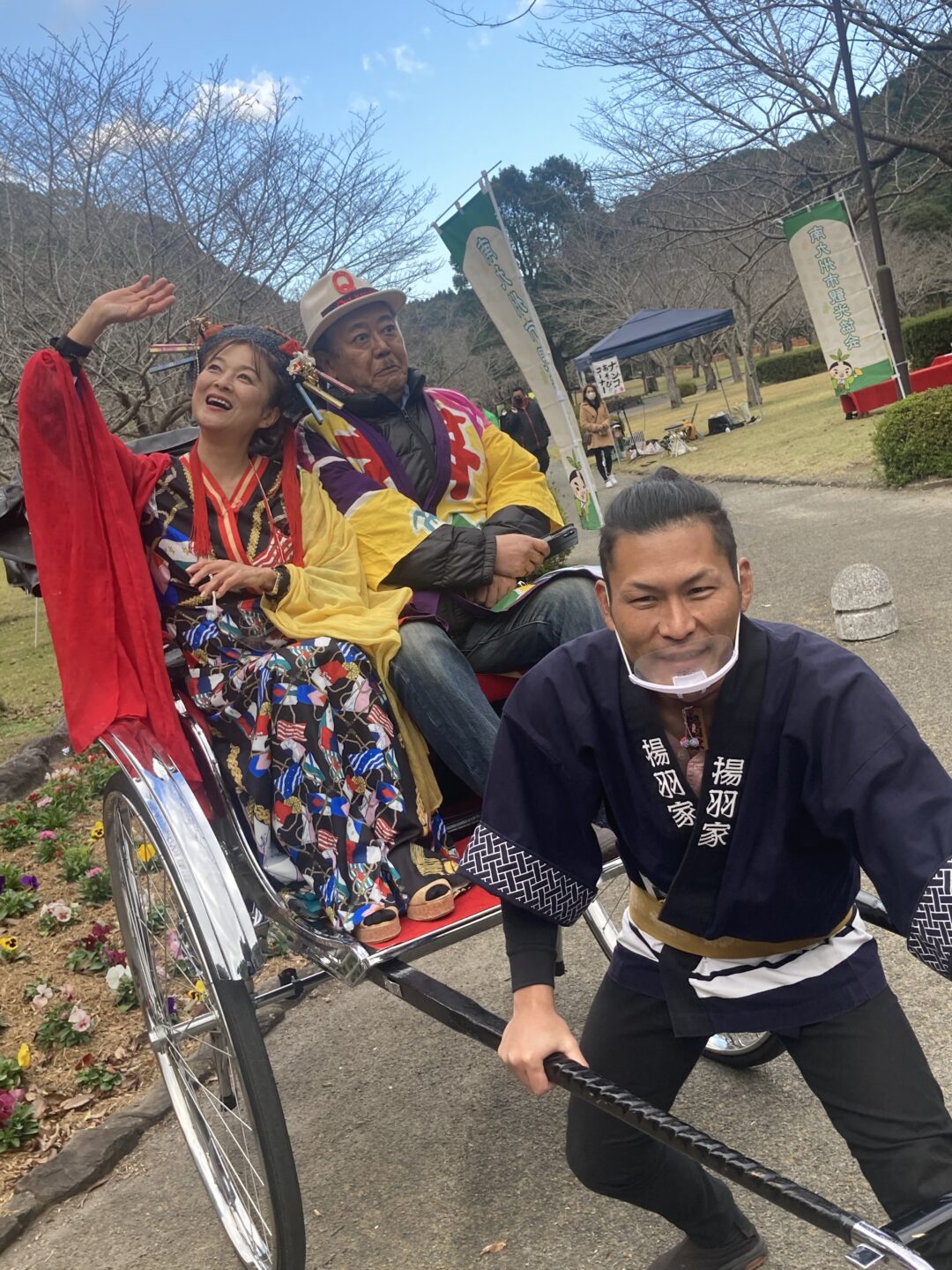 人力車 in 紅葉 2020年11月30日 皆様こんにちは😆 本日は南九州市の岩屋公園にて開催されたおもてなしイベントで走らせていただきました! 人力車に乗ることでいつもとひと味違った紅葉をお楽しみいただけたのではないでしょうか😆 イベント中には南九州市キャラクターのお茶むらいも乗車体験!ちゃんサネさんとリカねぇさんにもご乗車していただきました!ありがとうございます😊 皆様も是非紅葉を見に岩屋公園へ足を運んでみてはいかがですか?